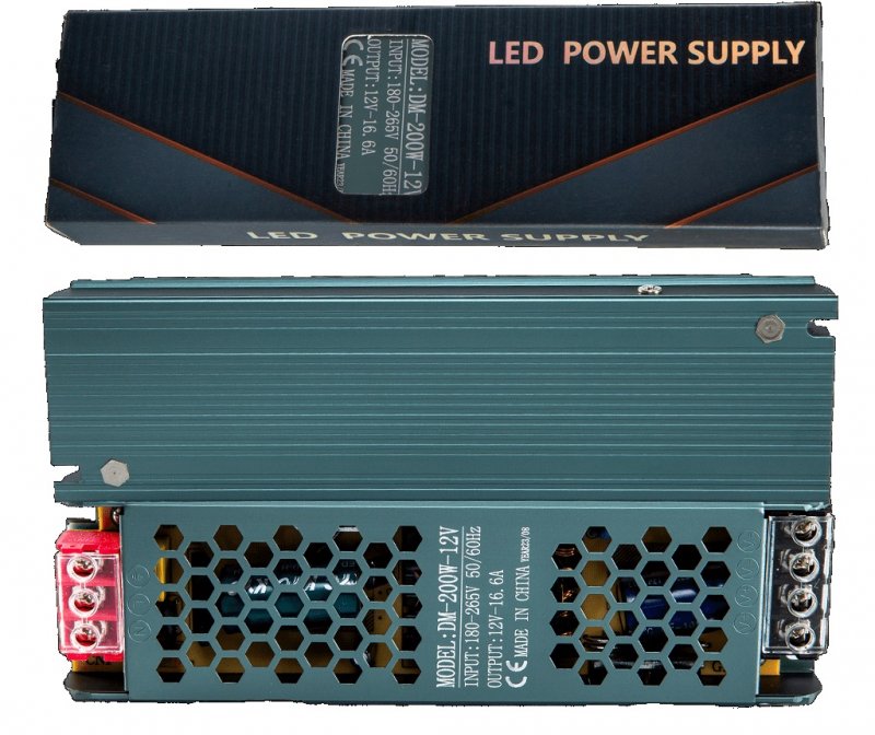 سوییچینگ ۱۲ ولت 2۰۰ وات (16/6 آمپر) اسلیم یا باریک با ابعاد طول 180 میلیمتر، عرض 48 میلیمتر و ارتفاع ۲۲ میلیمتر میباشد.